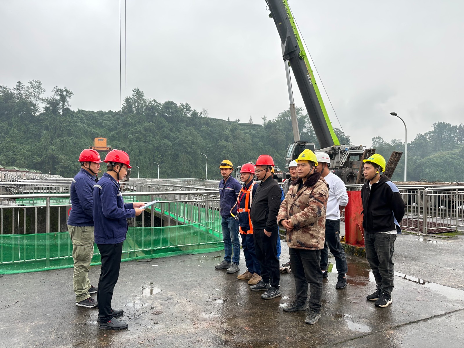 检修期间,1号、8号冲砂泄洪闸门液压缸拆出吊运返厂大修是高奉山电厂的重要节点任务,为确保液压缸拆出吊运安全平稳进行,进一步提高检修质量,电厂对作业人员进行液压缸起吊安全技术交底。作业时,电厂各级管理人员、安全监督人员组织检修人员就起吊油缸工作的准备情况、应急预案、各项安全措施和技术措施的落实情况进行了仔细核实,对各个关键点进行再次强调。