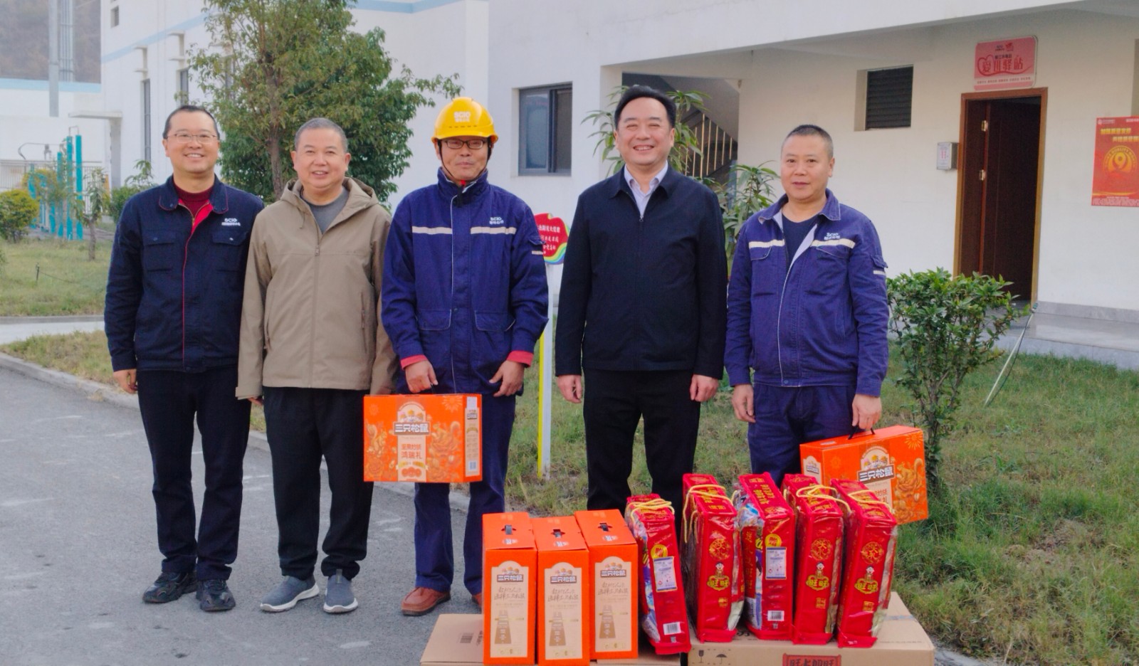 杨涛一行深入银江水电站施工变电站,看望慰问在此工作的槽渔滩公司员工,充分肯定他们四年来为银江水电站工程建设付出的不懈努力,并向他们表达节日的诚挚祝福。
