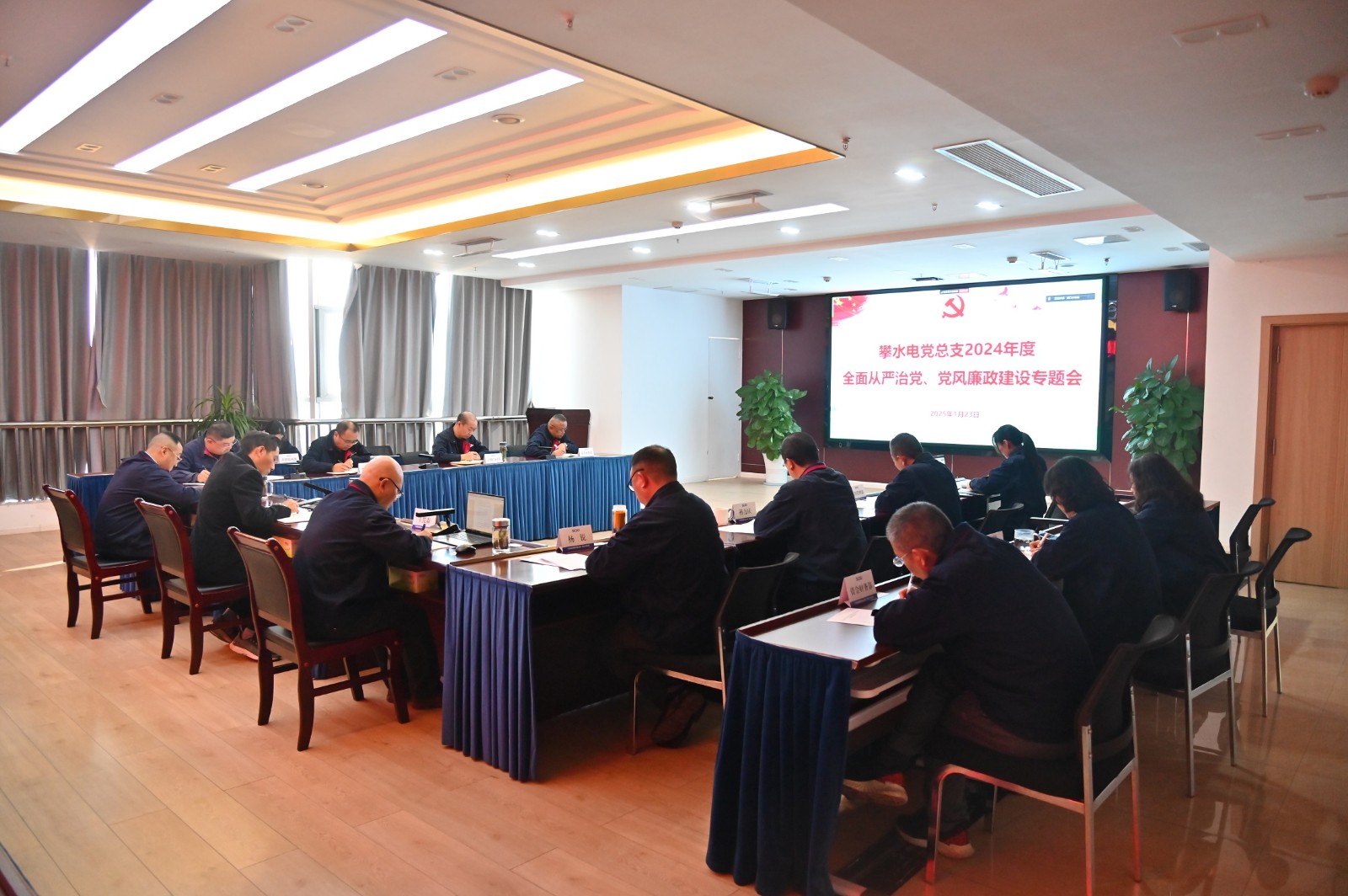 1月23日,攀水电党总支组织召开2024年度全面从严治党、党风廉政建设专题会,易倍体育 副总经理、攀水电公司党总支书记、董事长徐孝刚出席会议并讲话,公司党总支委员、纪检小组长杨锐主持会议,公司领导班子成员参加,公司各部门负责人、党群工作部、纪检工作部员工列席。