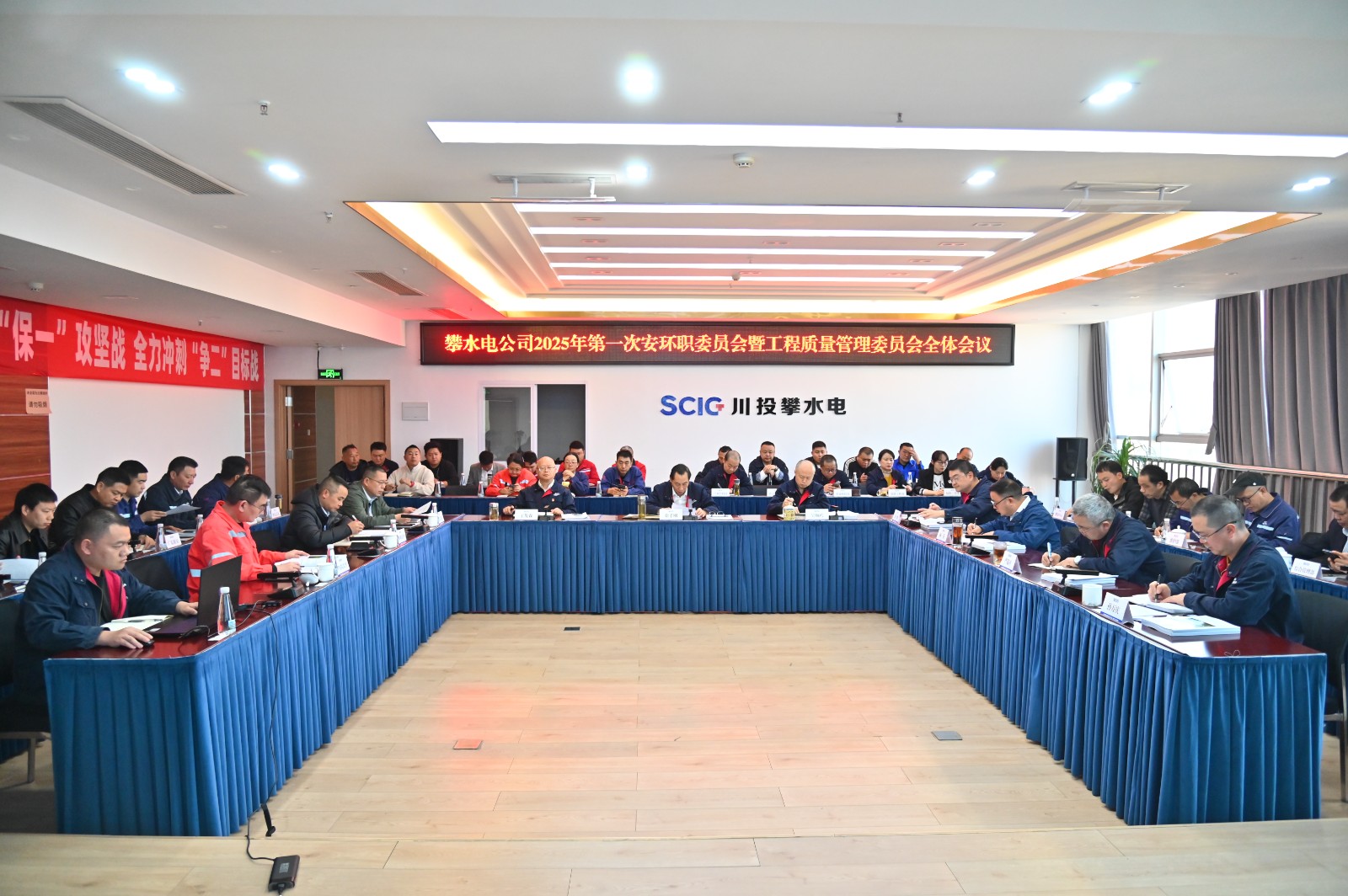 2月17日上午,攀水电公司组织召开了2025年第一次安环职委员会全体会议。会议由易倍体育 副总经理,攀水电公司党总支书记、董事长、安环职委员会主任徐孝刚主持,公司安环职委员会委员、各参建单位项目部主要负责人、各参建单位安全生产管理人员及安环职委员会办公室成员共计50余人参加会议。