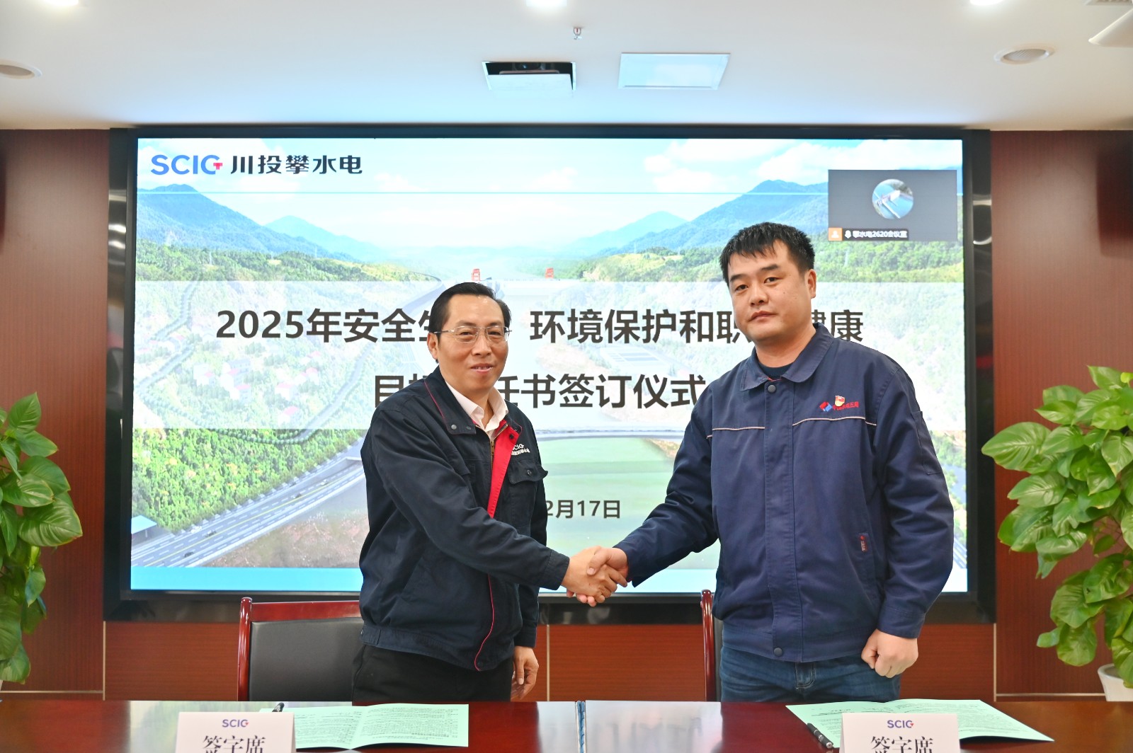 会议对银江水电站工程建设2024年度安全生产隐患排查整治先进单位、先进集体、先进个人进行了表彰,并与公司各部门及各参建单位签订了2025年安全生产、环境保护和职业健康目标责任书。
