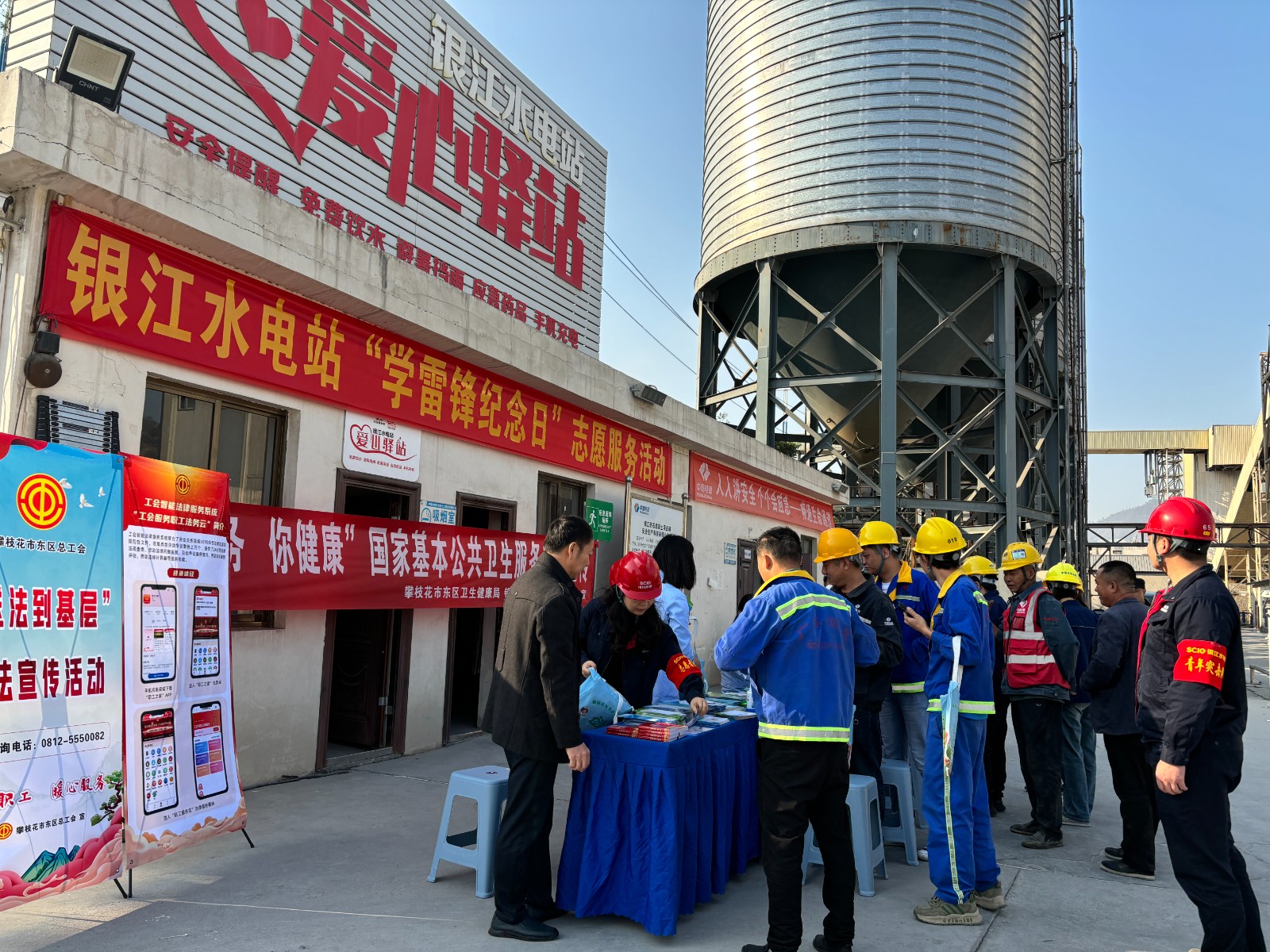 活动现场,银江工地爱心驿站变身“时尚沙龙”,攀枝花市美容美发行业协会10名专业理发师现场打造“10分钟快剪”服务圈,公司工会同步提供消毒湿巾、免洗洗手液,确保大家剪完发,清清爽爽上工去;银江镇卫生院创新推出“移动健康管家”服务,由4名医务人员分别进行血糖、血压测量,为居住半年以上时间的居民建立健康档案,签约家庭医生服务,为慢性病患者建档,更有中医把脉问诊开展健康咨询解答等;安全健康知识“沉浸教学”,多名志愿者为一线建设者开展中暑、热射病、春季流感预防等职业健康治知识宣传,发放健康教育宣传资料,为职工发放《安全生产法》《四川省安全生产条例》《安全生产与劳动保护职工学习手册》《职业病防治宣传手册》《应急逃生知识宣传册》等资料1000余份,将雷锋精神转化为常态化服务,赢得了一线职工的一致好评。