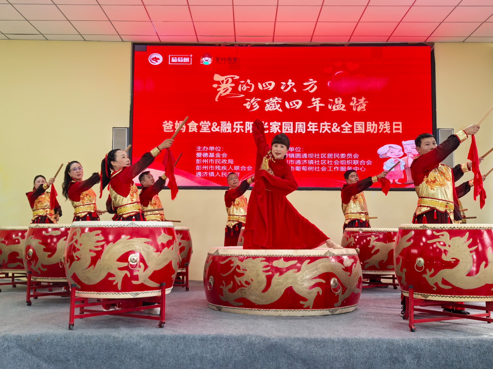 5月16日,在彭州市通济镇圆通坝社区“爸妈食堂”4周年庆暨全国助残日活动现场,天彭电力理论宣讲队队员以一场气势恢宏的非遗大鼓《盛世凯歌》拉开庆典帷幕,不仅展现了国企参与基层治理的创新实践,更奏响了文化惠民与乡村振兴的协奏曲。