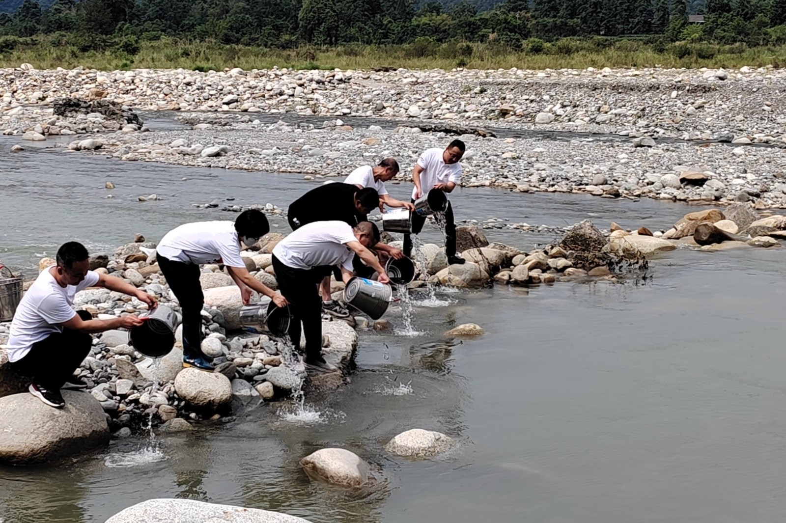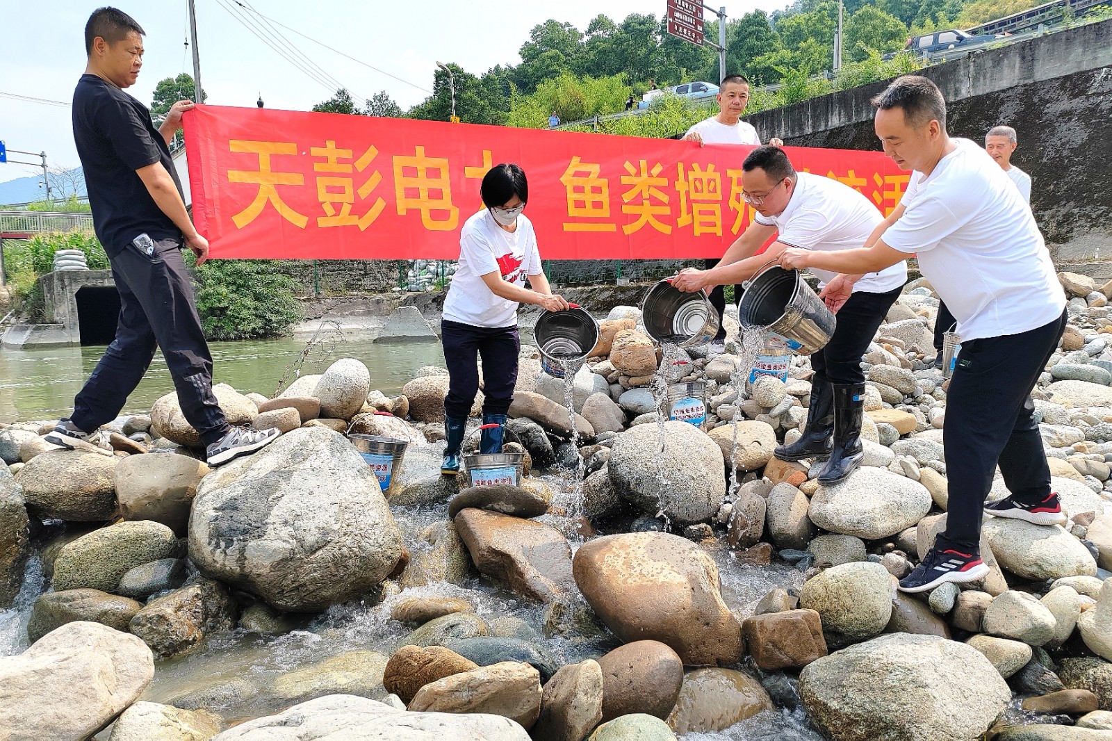 为切实履行“绿色小水电示范电站”关于协调清洁能源生产与生态环境保护的重要职责,推进建设“水清鱼欢”的良好生态环境,助力实现“双碳”宏伟目标和赋能乡村振兴,近日,天彭电力在位于官田坝站尾水处的湔江河道区域,开展了2025年度鱼类增殖放流活动。