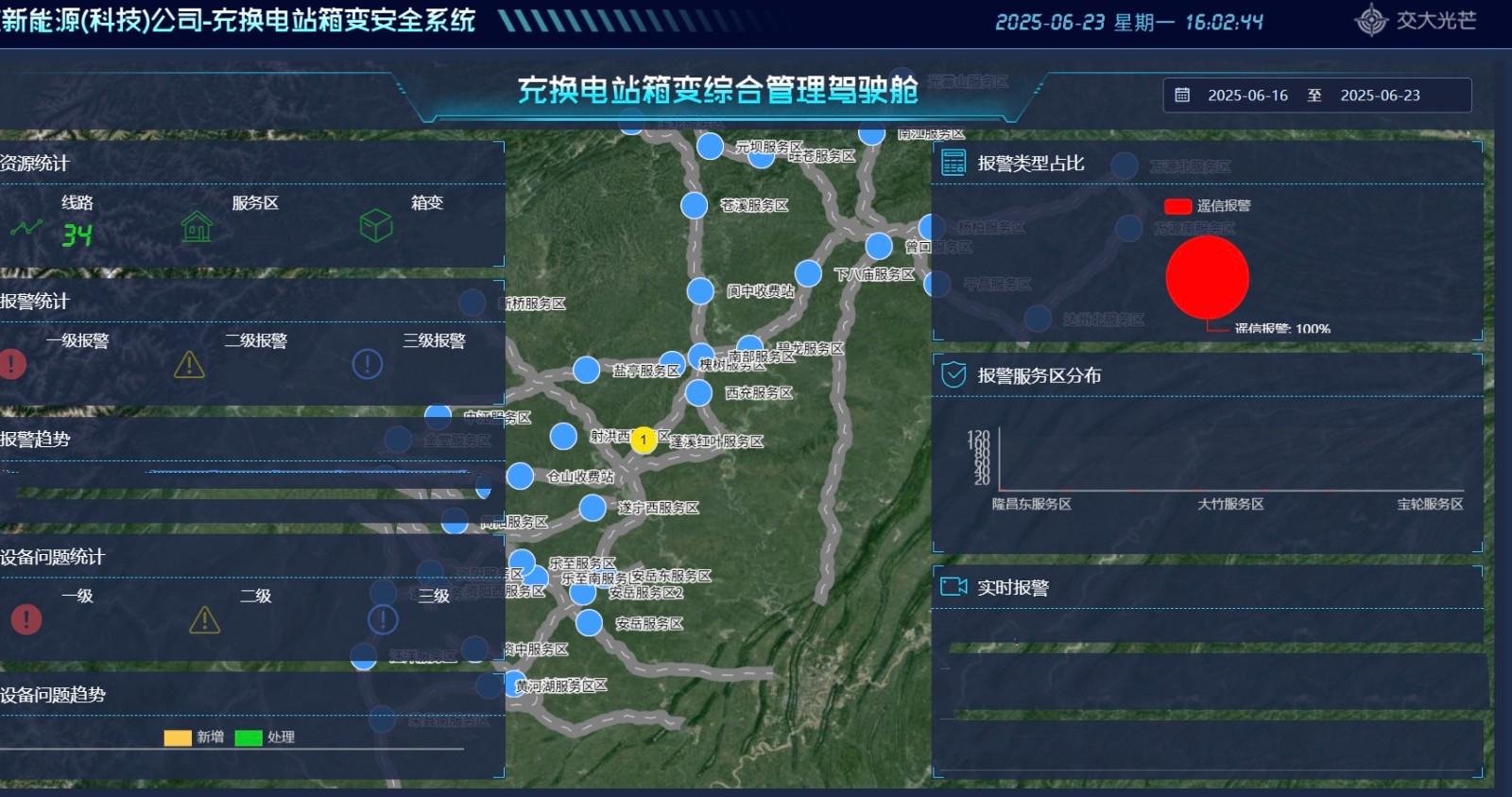 据交大光芒技术工程师胡鸿林介绍,针对新能源汽车充换电箱式变电站存在供电安全实时监控缺失、缺乏对设备状态异常或故障原因进行精准甄别的痛点难点,交大光芒提供的解决方案具有自动化、智能化、数字化特点,实现对箱变的智能化感知、自动化监控、数字化管理,实时掌握设备状态,提高管理效率,降低运营成本。