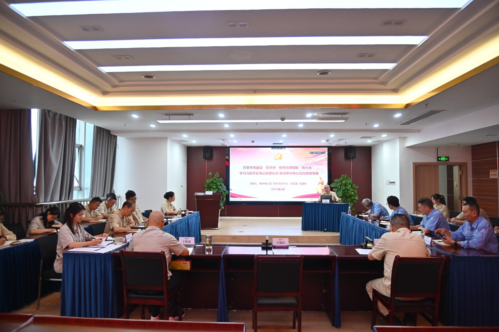 为进一步推进深入贯彻中央八项规定精神学习教育走深走实,推动作风建设常态化长效化,6月29日,攀水电公司党总支副书记、总经理吴巍屿以“拧紧作风建设‘总开关’,筑牢纪律规矩‘防火墙’”为题讲授了专题党课,公司机关第二党支部党员、水电七局党支部党员及计划合同部员工共计20余人参加学习。