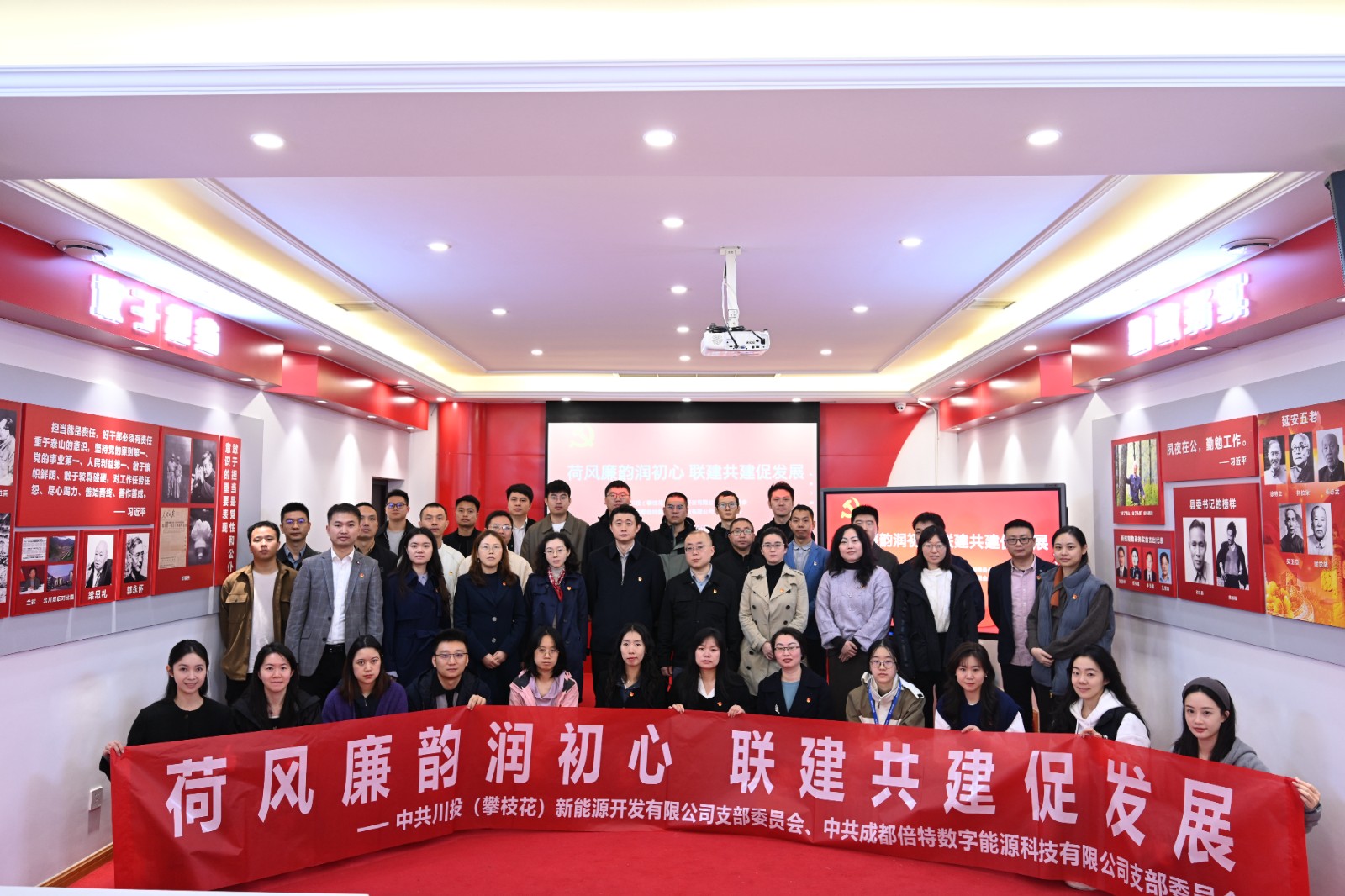 为强化党建引领,持续推动党建链赋能产业链,积极打造“党建强、业务兴”的共赢典范,10月31日,川投(攀枝花)新能源开发有限公司(以下简称攀新能源)党支部与成都倍特数字能源科技有限公司(以下简称倍特数能)党支部在成都崇州“荷风廉韵”廉洁文化教育基地联合开展“荷风廉韵润初心 联建共建促发展”主题党建联建活动。活动在庄严肃穆的重温入党誓词中拉开帷幕,全体党员进一步筑牢初心使命,强化了在能源革命中当先锋、作表率的责任担当。