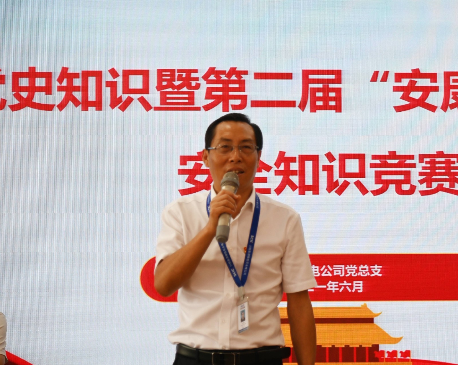 公司党总支委员、董事会秘书、工会主席邓勇在开幕致辞中讲到:本次知识竞赛一方面是深入开展党史学习教育,回顾党的光辉历程,讴歌党的丰功伟绩;另一方面是践行“落实安全责任,推动安全发展”的安全生产月活动主题,目的就是在全银江水电站范围内掀起新一轮党史知识、安全知识学习热潮,激发党员干部群众为银江工程办实事的热忱,形成以学促行的良好习惯,让党史教育和安全意识更加深入人心。