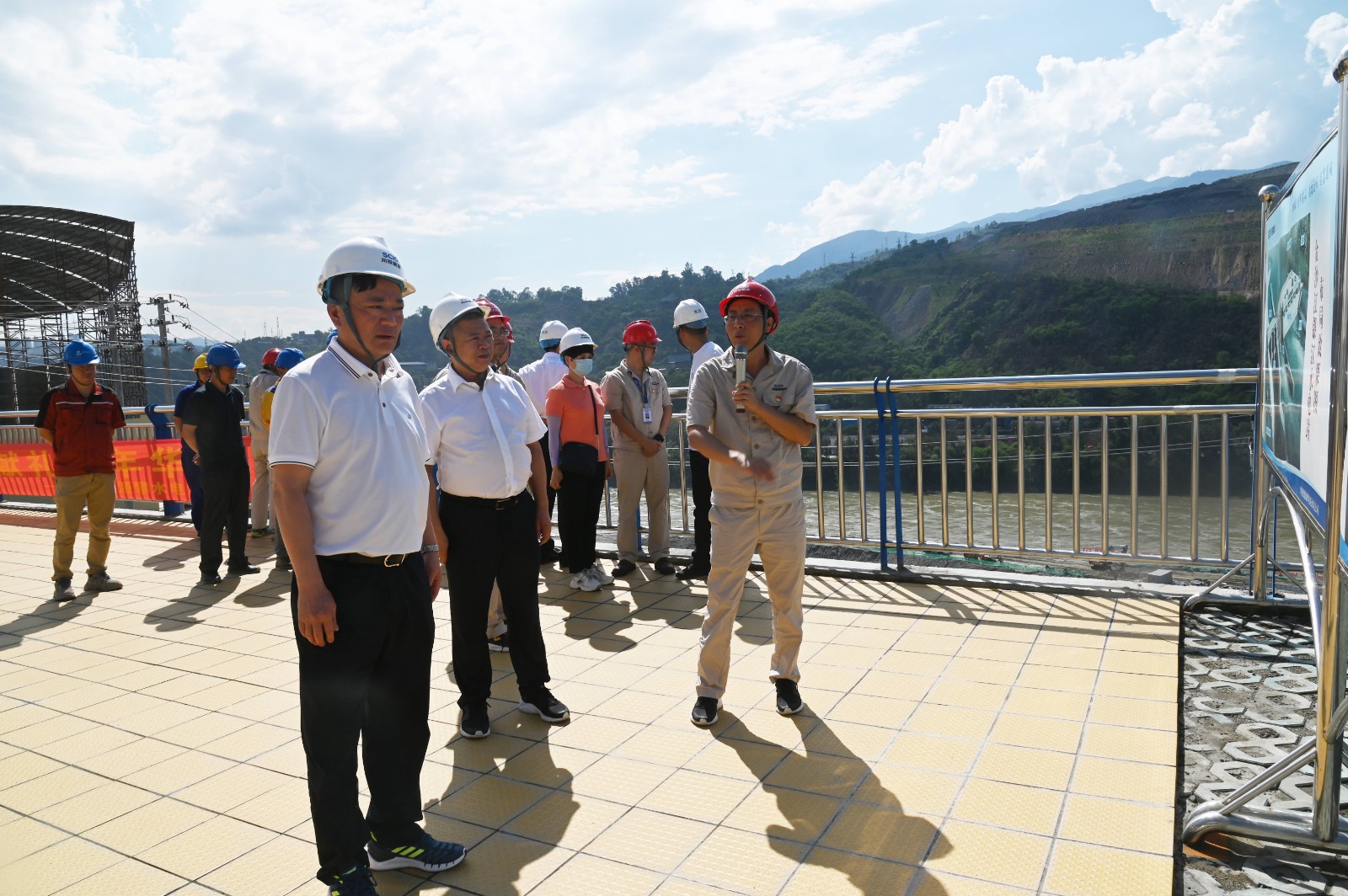 李明舟一行在银江水电站施工变电站观景平台听取了易倍体育 副总经理、攀水电公司党总支书记、董事长徐孝刚汇报了银江水电站工程建设、防洪度汛、安全文明施工、环保水保等方面工作情况。