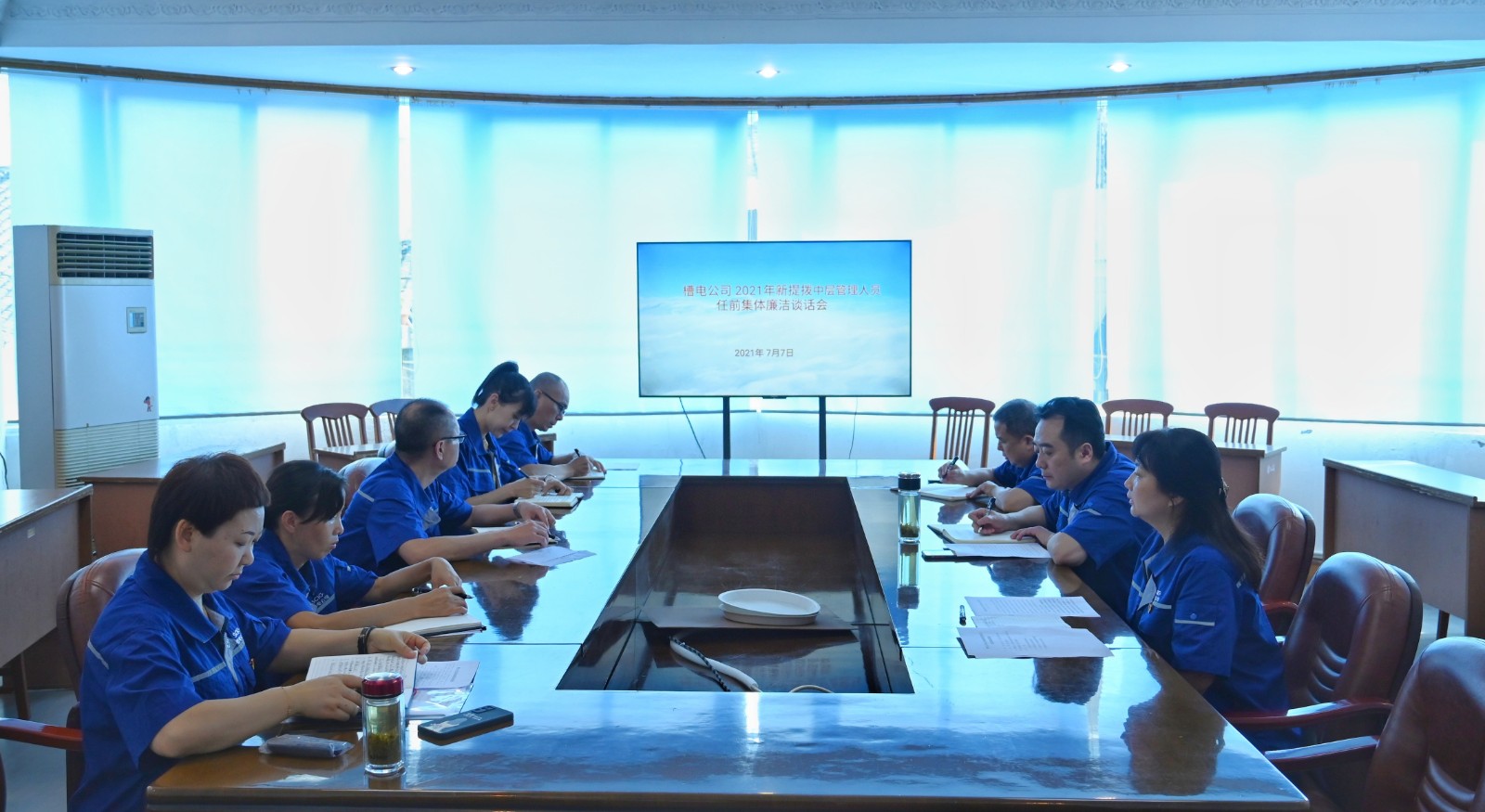 7月7日,槽渔滩公司召开新提拔中层管理人员任前集体廉洁谈话会。公司党委书记、董事长杨涛、公司总经理何光富、公司纪委书记谢爱东对2021年竞聘上岗的5位部门正、副职管理人员进行了任前廉洁谈话。