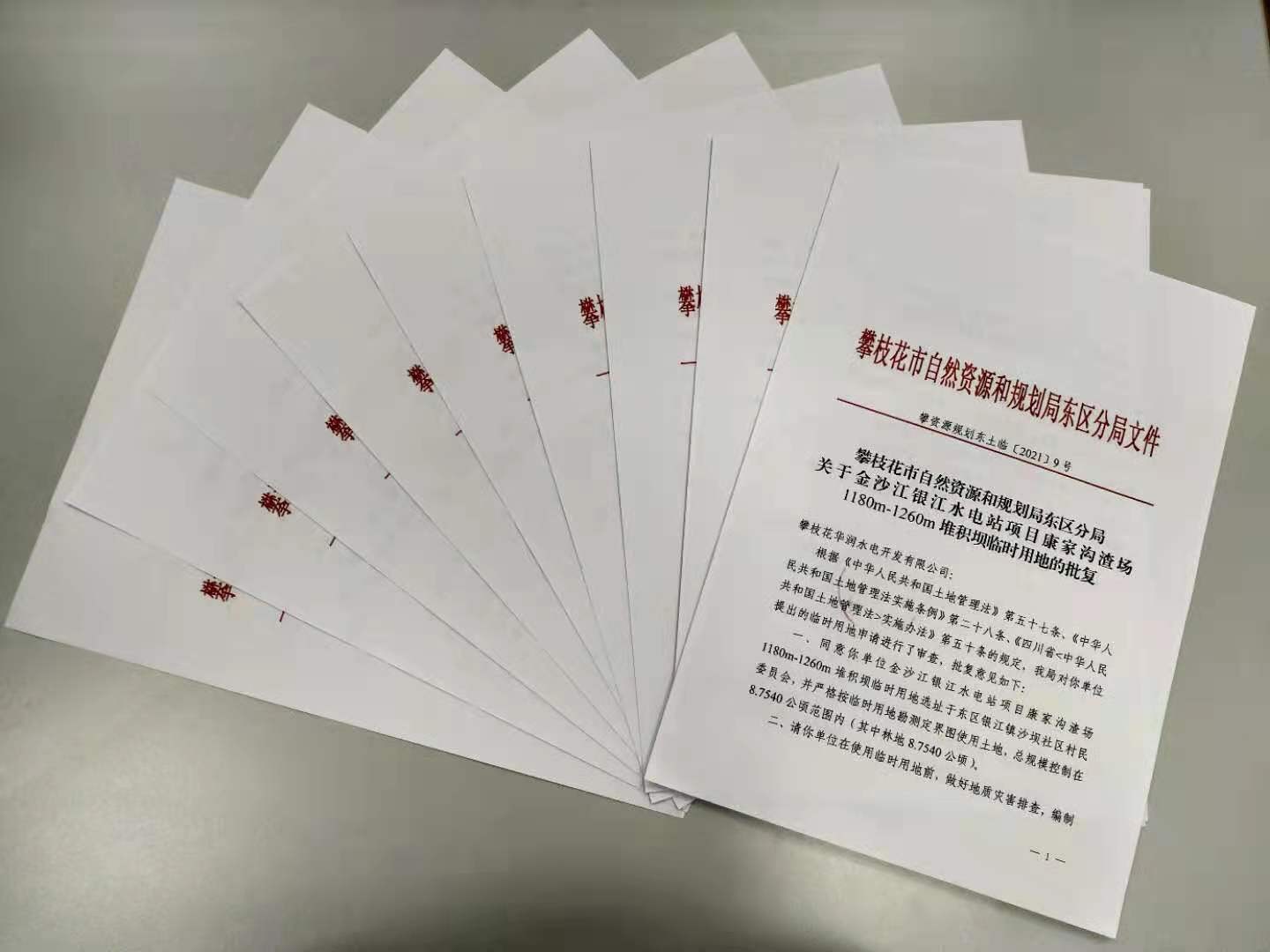 近日,易倍体育 攀水电公司银江水电站项目临时用地手续,获得攀枝花市自然资源和规划局东区分局批复,同意按照有关规定提供97.3881公顷土地作为银江水电站临时用地。至此,银江水电站使用林地及建设用地已全部获得批准。