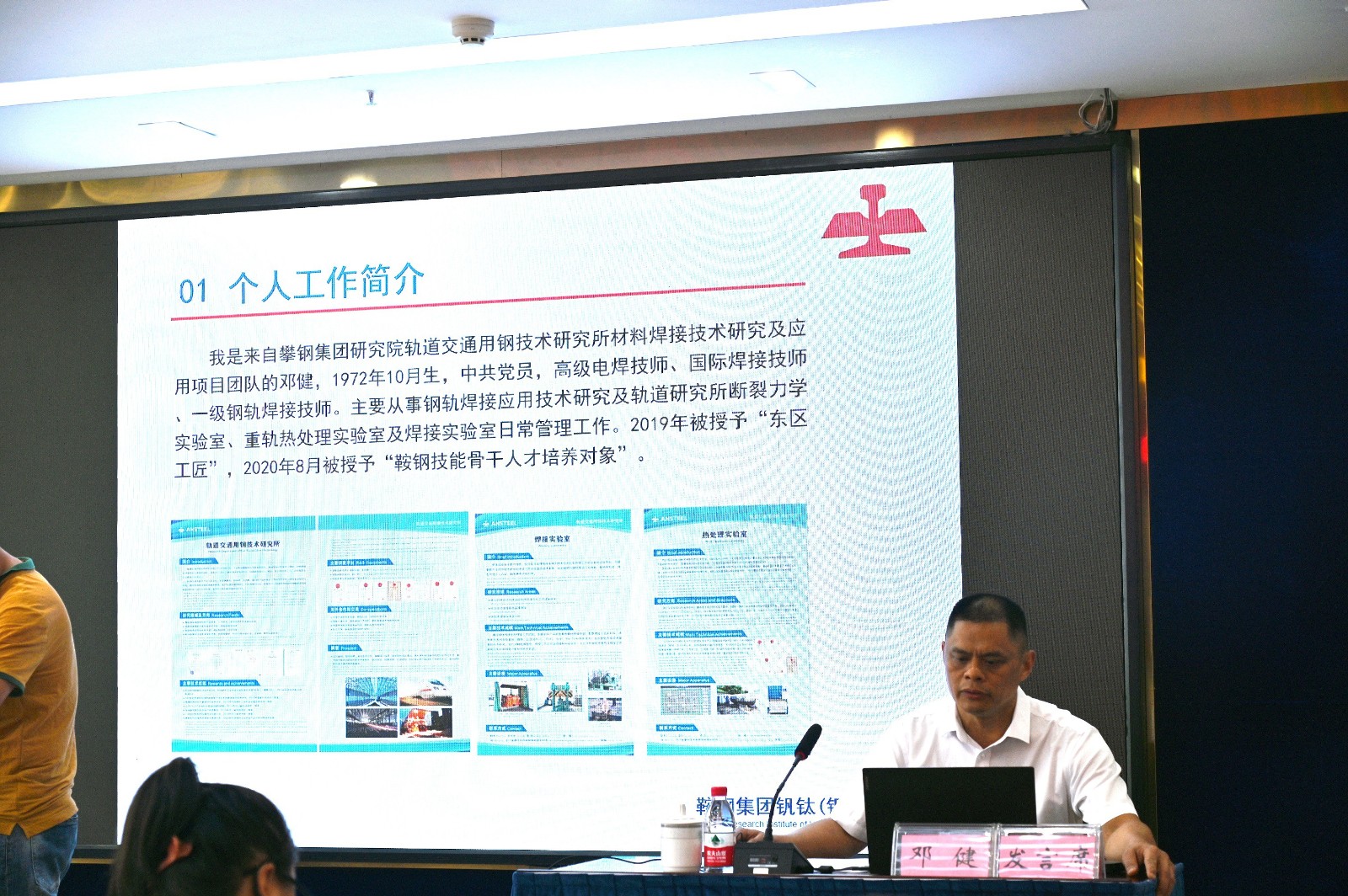 “东区工匠”攀钢集团研究院焊接实验室邓健讲述了近年来个人所做的技术革新和团队取得的成就,表示将积极打造国内外一流的知名专业化钢轨焊接实验室,持续保持攀钢钢轨国际领先水平。