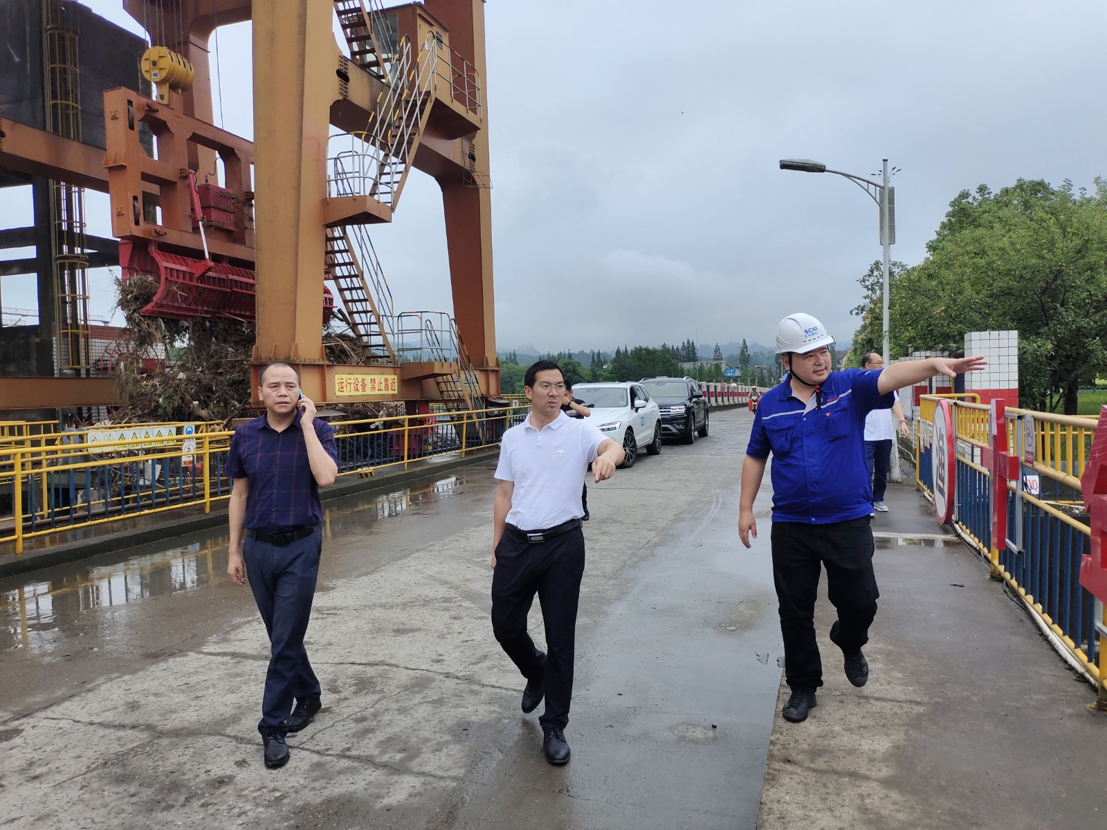 7月15日,洪雅县委副书记、县长周代军一行赴百花滩电厂检查防洪工作,电厂厂长姚磊陪同检查。