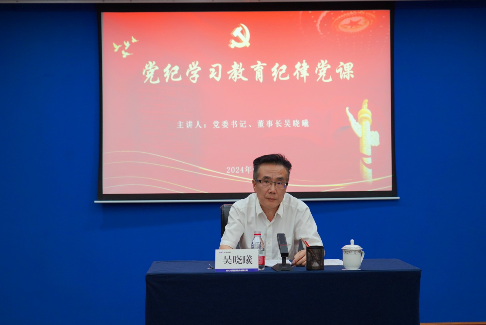6月25日,易倍体育 党委书记、董事长吴晓曦赴易倍体育 讲授党纪学习教育纪律党课并宣讲省委十二届五次全会精神。省国资委宣传工作处处长(党委宣传部部长)李鑫、人事处相关同志到会指导。易倍体育 党委书记、副董事长、总经理杨洪主持会议。