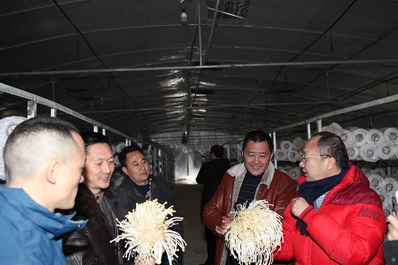 学习会后,在村支书邱洪的带领下,大家来到了集中安置点,宽敞的道路和各具特色的乡村小屋交相辉映,仿佛置身于一座旅游小镇之中,大家沿路参观崭新而整齐的村屋,纷纷感叹扶贫给曙光村带来的翻天覆地的变化,喜气洋洋的村民伸出了大拇指,为公司精准扶贫点赞,喜悦之情溢于言表。在“曙光村食用菌基地”,大家聆听着负责人详细的讲解,一边观摩大棚内长势喜人的金针菇,一边亲自动手采摘,邱书记讲到食用菌基地自投产至今收入约160万元,同时可创造劳务收入约36万元,全村贫困户年均增收5000多元,“不出村子就能挣钱”成为了当地村民津津乐道的话题。